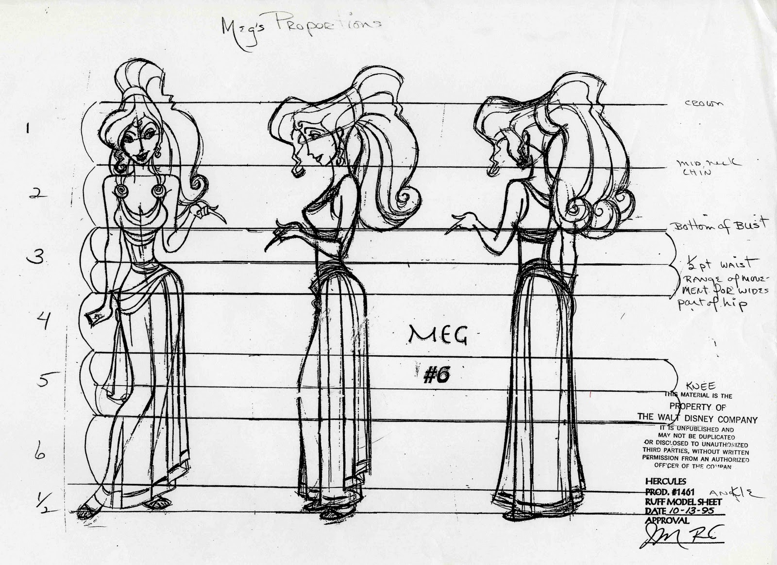 Você notará que a Folha de Modelagem da Turnê de Meg mostra três poses enquanto a de Herc mostra seis. A média está no meio; quatro. Frente, traseira, lateral e vista de três quartos.